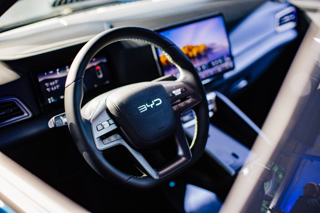 Interiér modelu ATTO 2 DM-i je kombináciou moderných technológií a praktického využitia. Palubnej doske dominuje digitálny prístrojový panel s uhlopriečkou 8,8 palca a veľký 12,8-palcový dotykový displej infotainmentu.