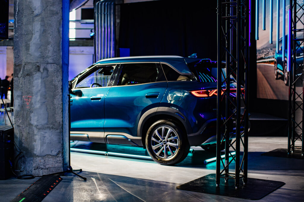 Dizajn pôsobí moderne a dynamicky. Prednej časti dominujú full-LED svetlá s výrazným svetelným podpisom, zatiaľ čo zadná časť so svetelnou lištou inšpirovanou tradičnými motívmi dodáva vozidlu nezameniteľný charakter. Bočný profil zvýrazňuje „plávajúca“ línia strechy a robustné opláštenie, ktoré podčiarkuje SUV vzhľad bez toho, aby pôsobilo ťažkopádne.